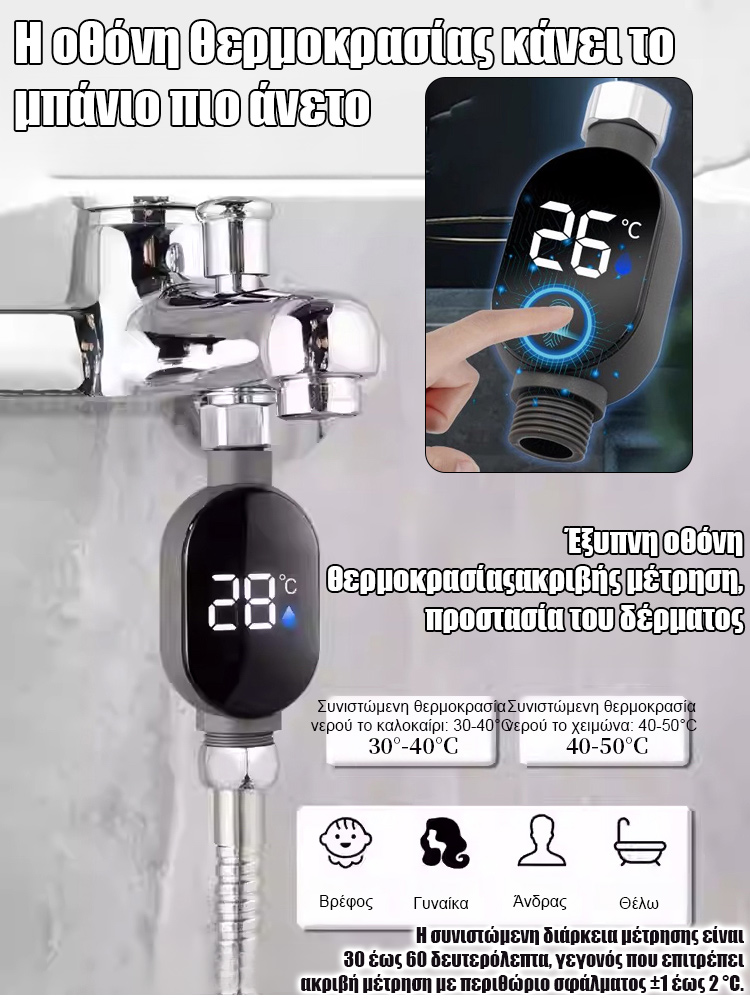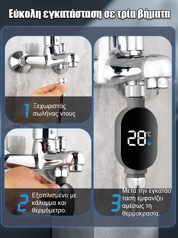 Βροχοκέφαλο με Έξυπνη Ένδειξη Θερμοκρασίας Ντους