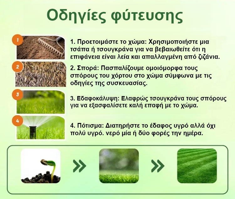 Σχεδιάστε ελεύθερα το τέλειο γκαζόν σας: Χλοοτάπητας που πρασινίζει σε 7 ημέρες, πράσινο όλο το χρόν